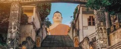 One of the most remarkable pieces is a colossal mural covering an entire wall—a sweeping panorama of the island of Lanka. It teems with intricate details: Hindu goddesses, towns and villages, elephants, lakes, trees, jungles, forests, peacocks, monks—a kaleidoscope of life.